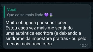 Sem perguntas, sem burocracia. Nosso compromisso é com sua transformação como escritora.