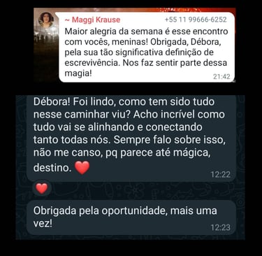 Desde 2012, acolhe escritoras em oficinas e cursos que misturam técnica, cuidado e ousadia — porque escrever também é se reconhecer. Sua metodologia nasce do feminismo dialógico: um espaço seguro para experimentar, errar, reescrever e publicar com ética e dignidade. Entre encontros, saraus e leituras críticas, Débora sonha abrir caminho para que cada vez mais mulheres escrevam, publiquem e sejam lidas.